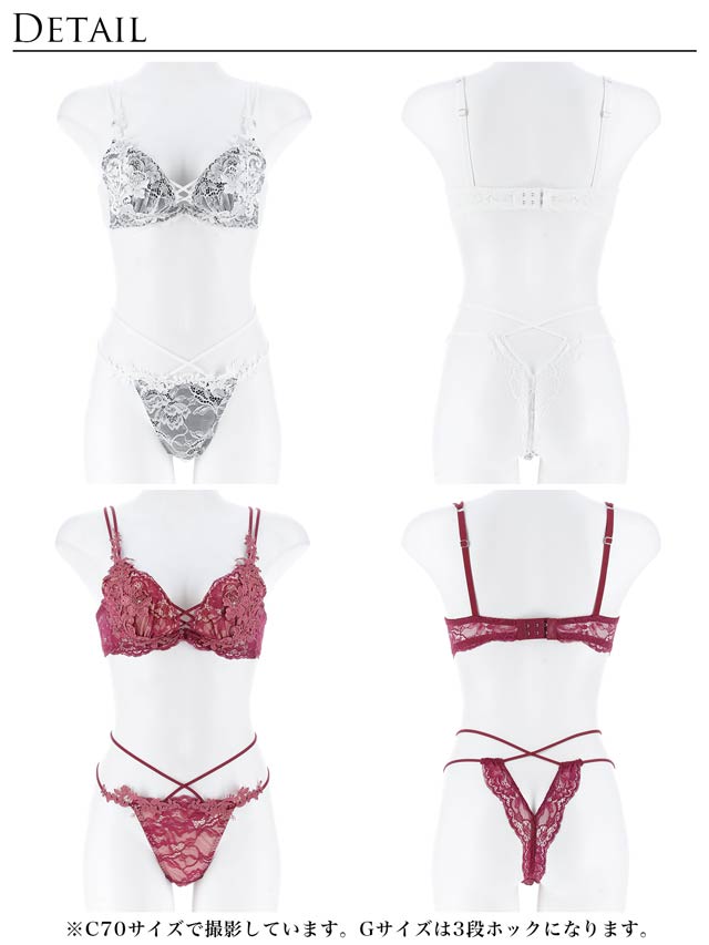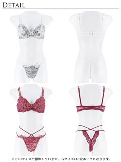 オールレースカットストリング育乳脇高ブラジャー&バック透けフルバックショーツ