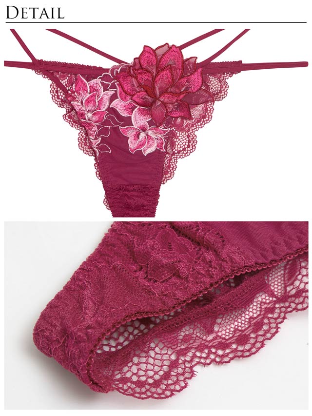 12/2再販!ダスティブルームエンブロイダリー育乳脇高ブラジャー&バック透けフルバックショーツ[激売れ]