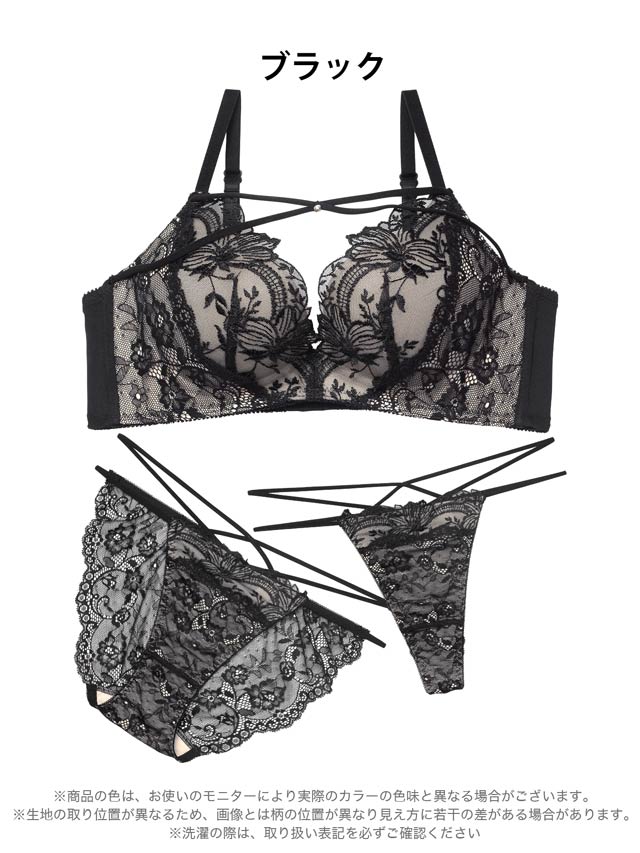 11/13新作!【あみち。プロデュース】【3点セット】ロマンティックレース育乳脇高ブラジャー&フルバック&Tバックショーツ