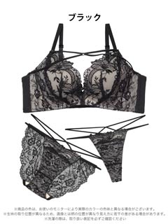 12/3再販!【三上悠亜着用】スモーキーカラー×ブラックフラワー刺繍ブラジャー&サイド紐Tバック[激売れ]