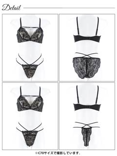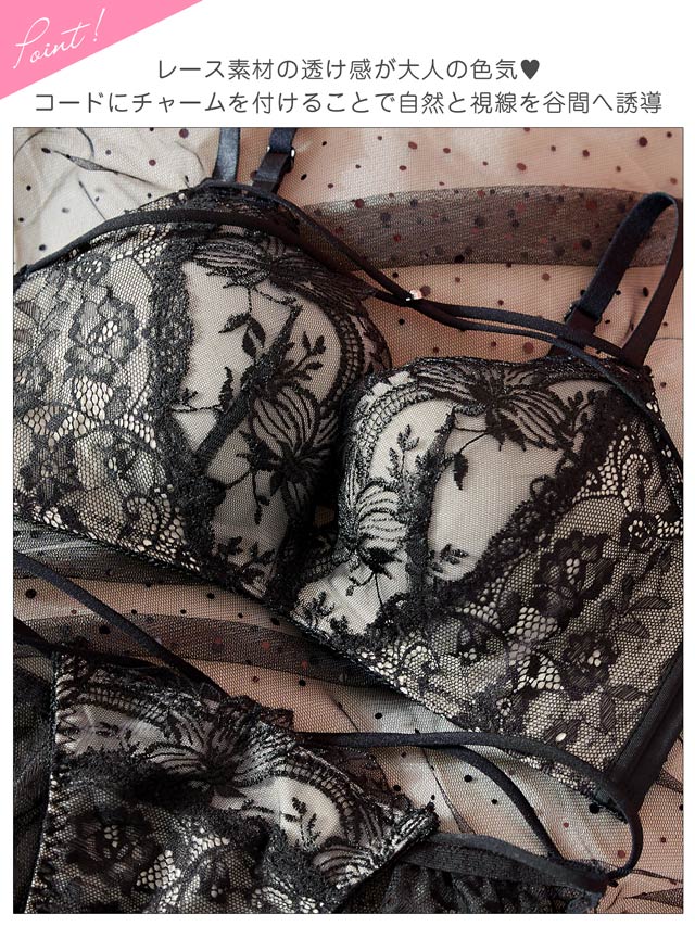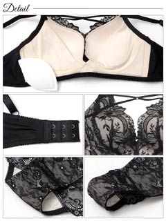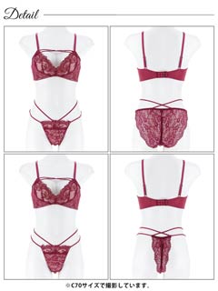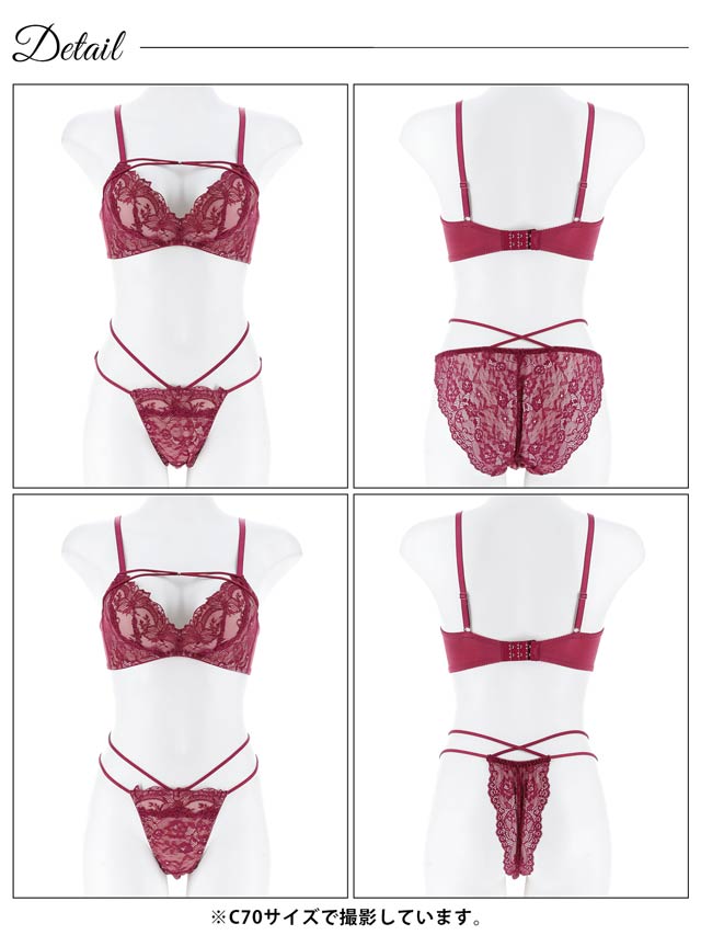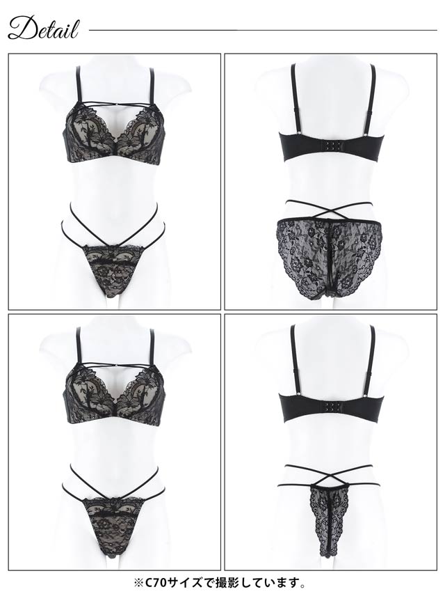 オールレースカットストリング育乳脇高ブラジャー&バック透けフルバックショーツ