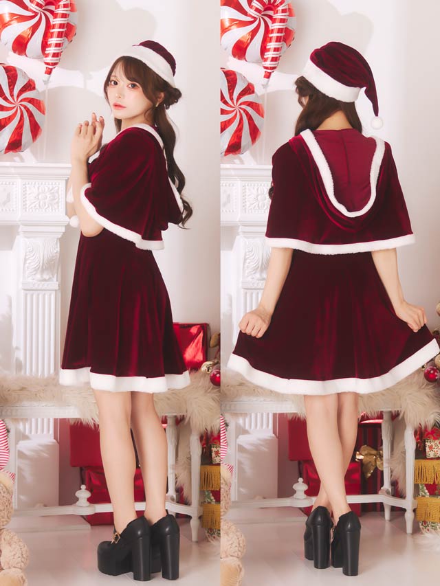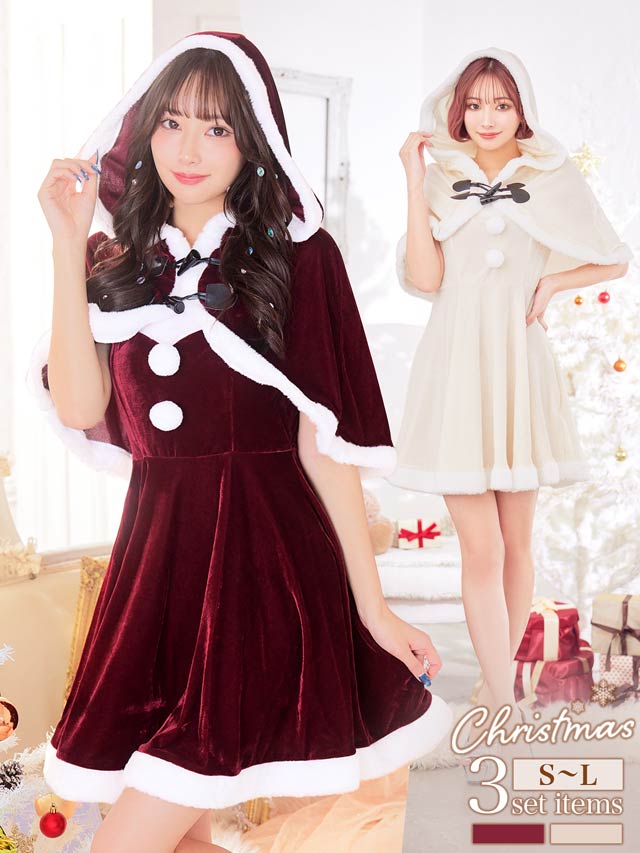 11/14再販![3点SET]ポンチョ&Aラインワンピースクリスマスコスチューム【2025サンタ/コスプレ】