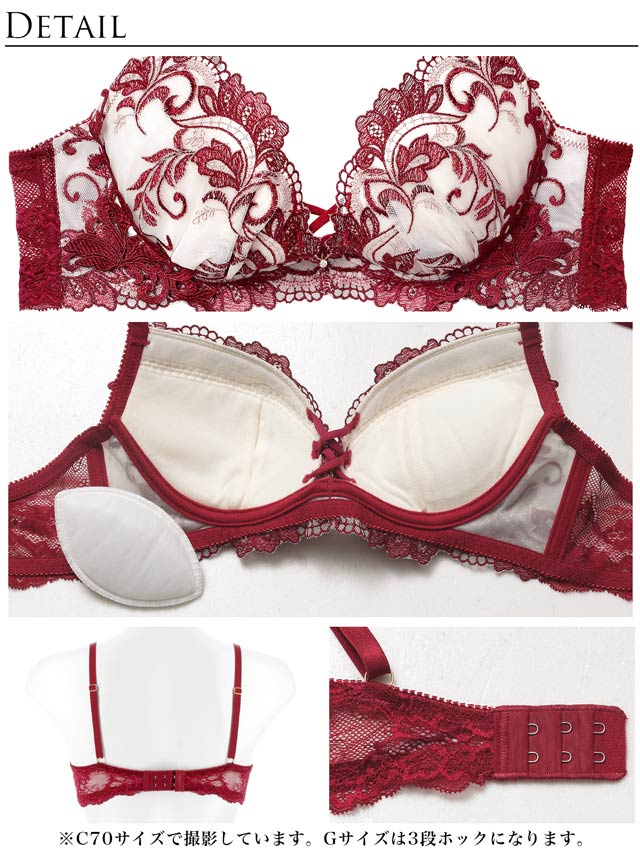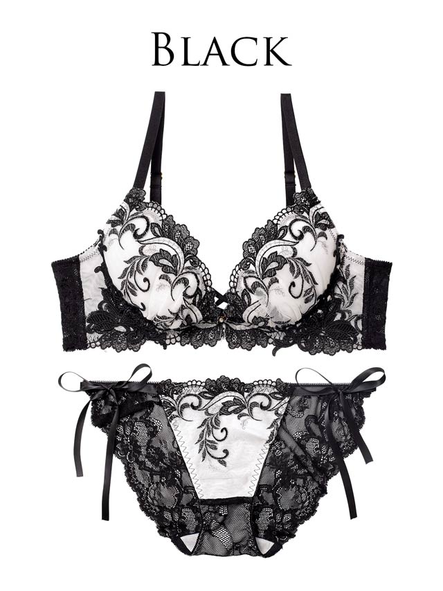 ダスティブルームエンブロイダリー育乳脇高ブラジャー&バック透けフルバックショーツ