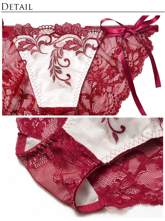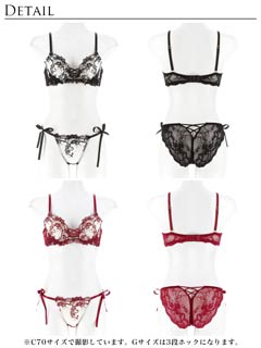 オールレースカットストリング育乳脇高ブラジャー&バック透けフルバックショーツ