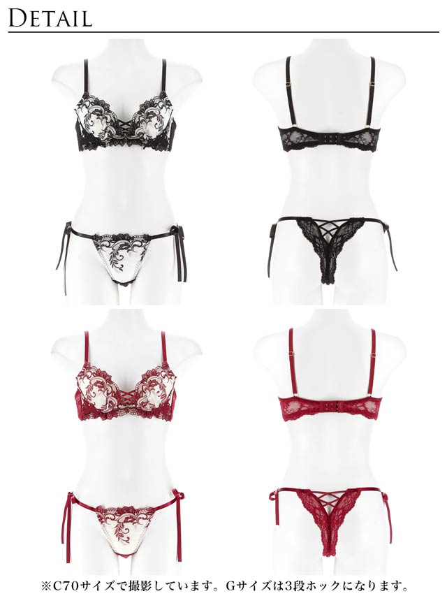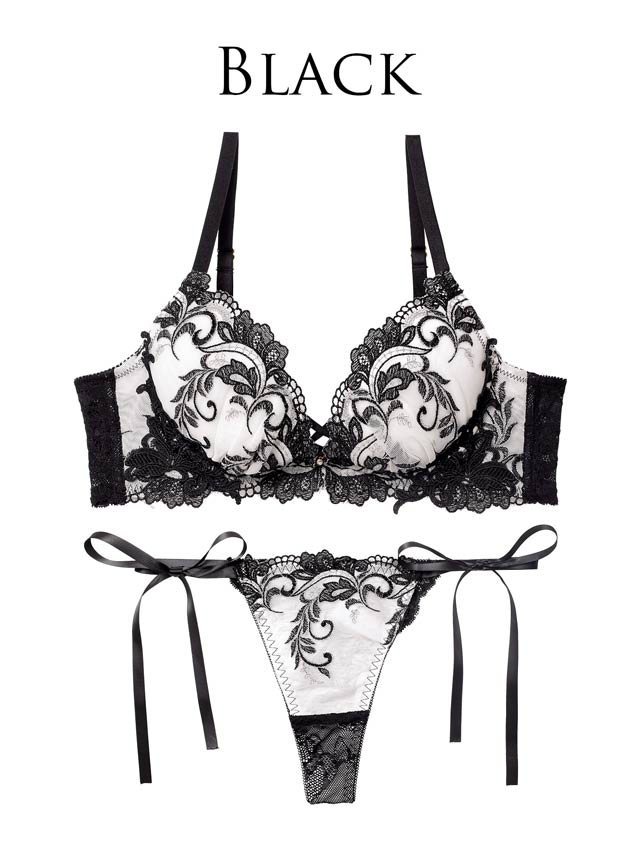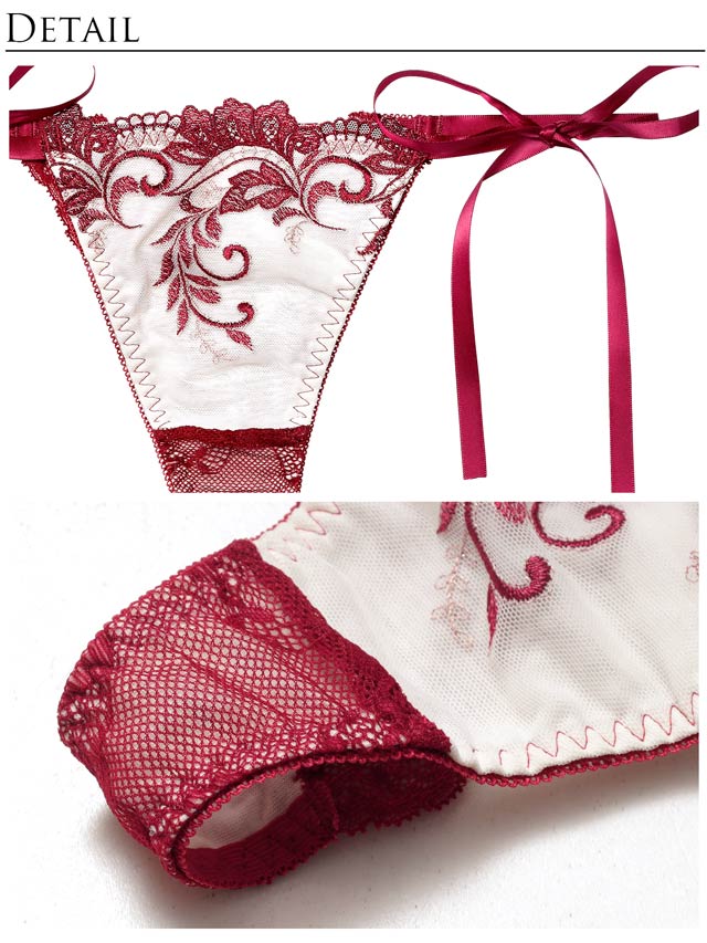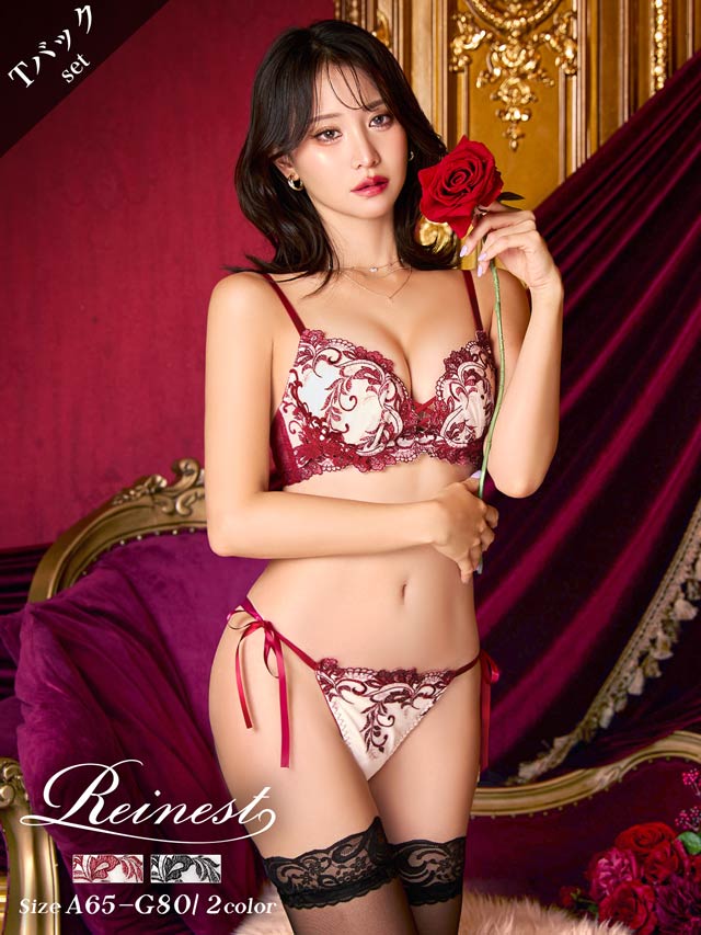 11/14新作!【永尾まりや着用】【Reinest】バロックリーフエンブロイダリーブラジャー&サイド紐バック透けTバックショーツ[大人気]
