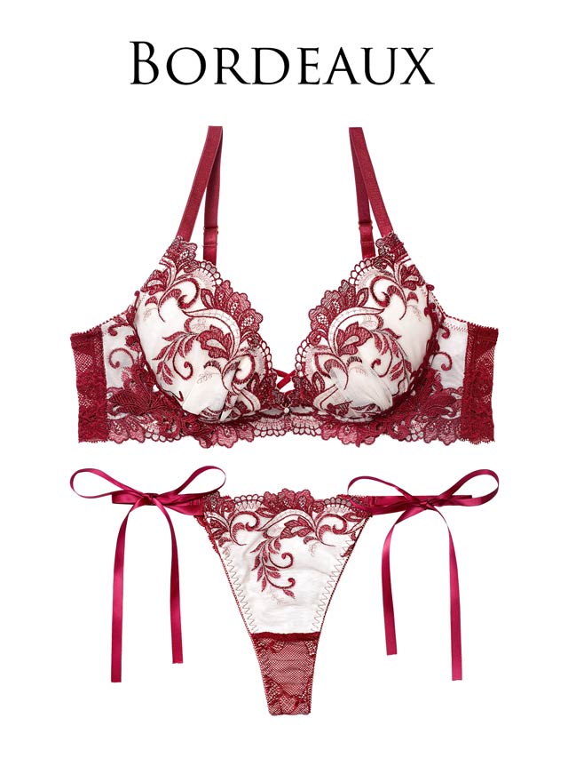 12/2再販!ダスティブルームエンブロイダリー育乳脇高ブラジャー&バック透けフルバックショーツ[激売れ]