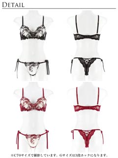 11/13新作!【あみち。プロデュース】【3点セット】ロマンティックレース育乳脇高ブラジャー&フルバック&Tバックショーツ