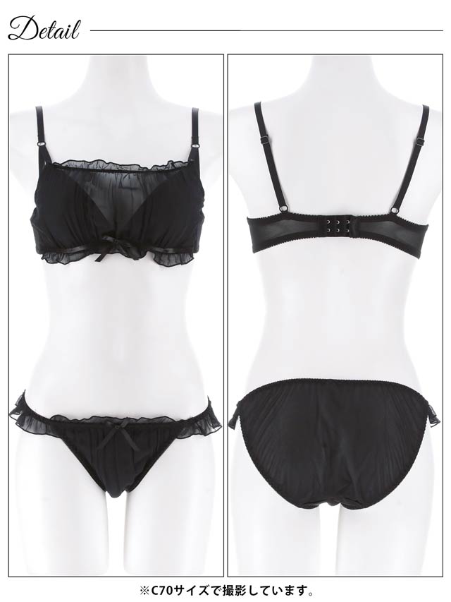 11/14新作!【EFサイズ】フラッフィーシフォンフリルブラジャー&フルバックショーツ[大人気]
