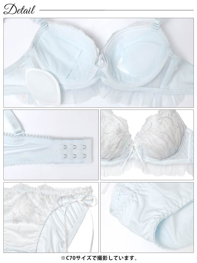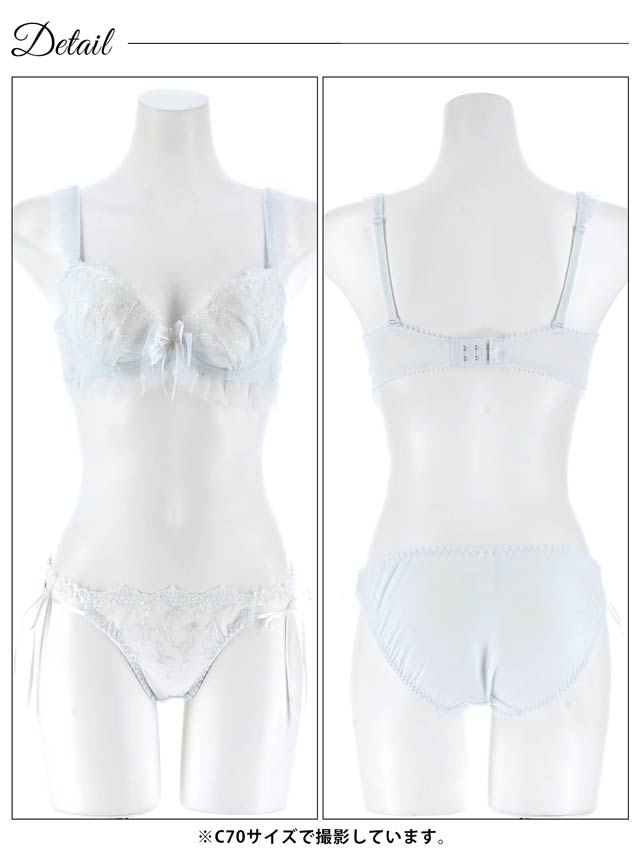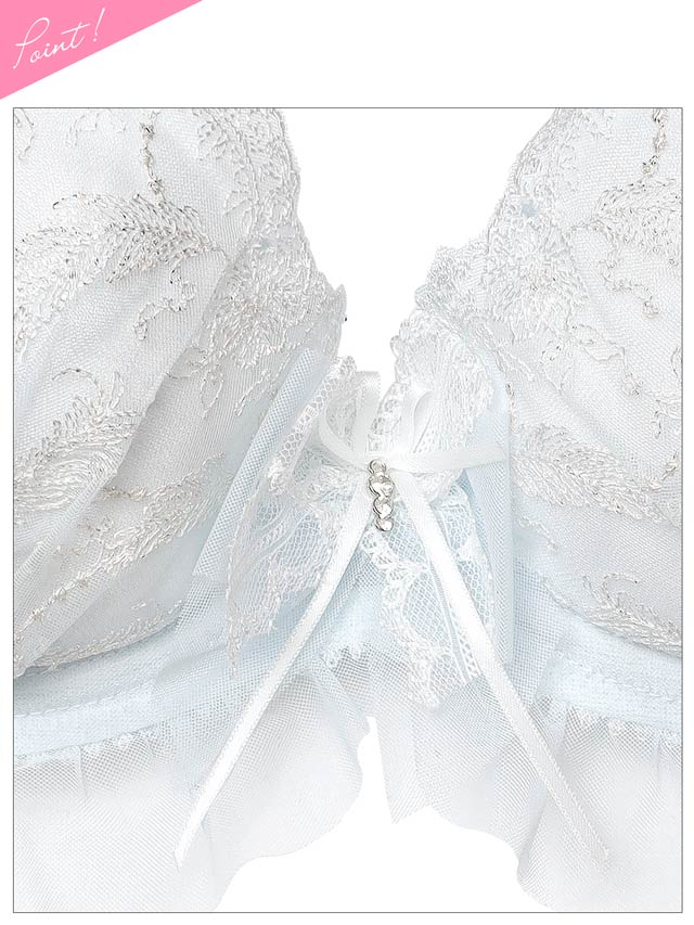 ダスティブルームエンブロイダリー育乳脇高ブラジャー&バック透けフルバックショーツ