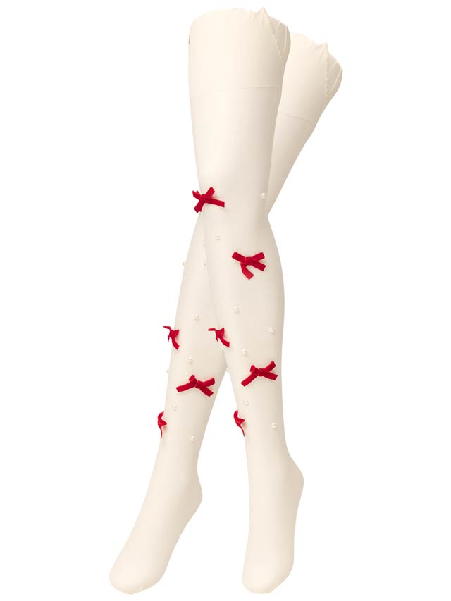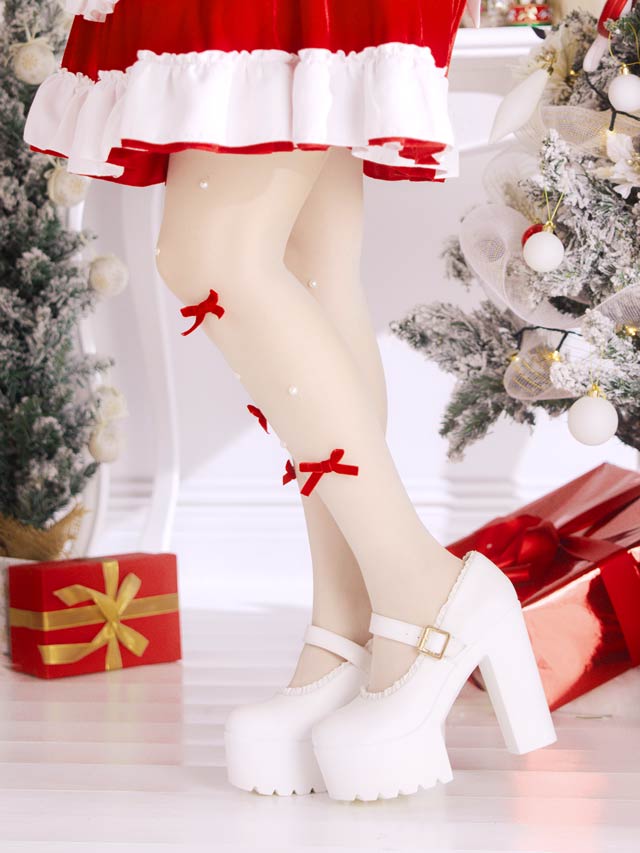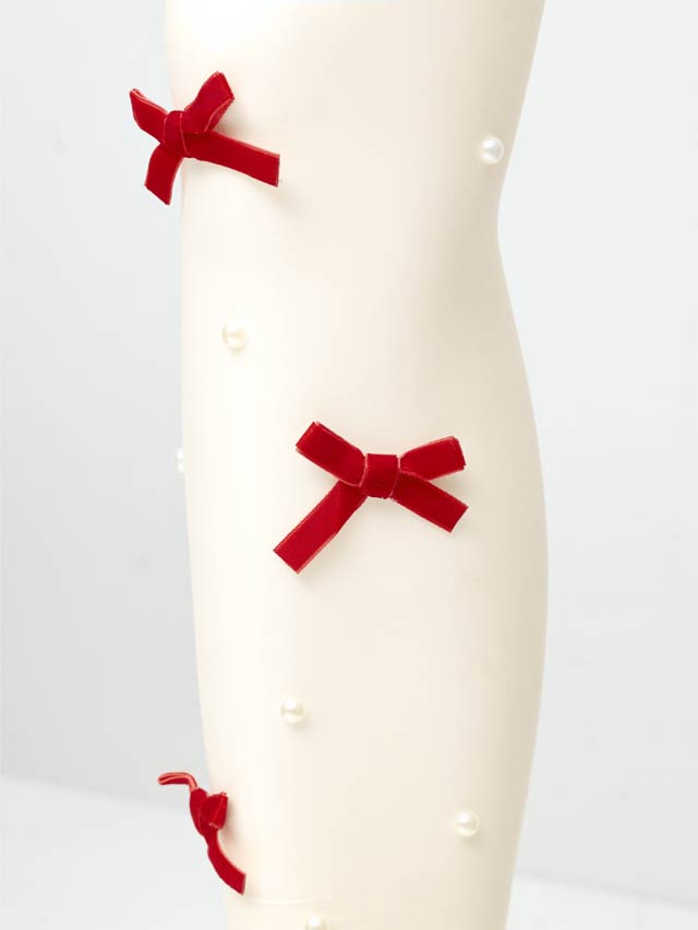 鮮やかなレッドカラーのリボンとパールを散りばめたガーリーな雰囲気のストッキング。サンタコスチュームにプラスするだけで足元を華やかに演出してくれます♪キュートなコーディネートにぴったりで写真映えも間違いなしのアイテムです◎