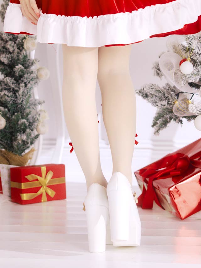 11/20新作!【4点SET】ホワイトリボンオーガンジーサンタコス【2025サンタ/コスプレ】
