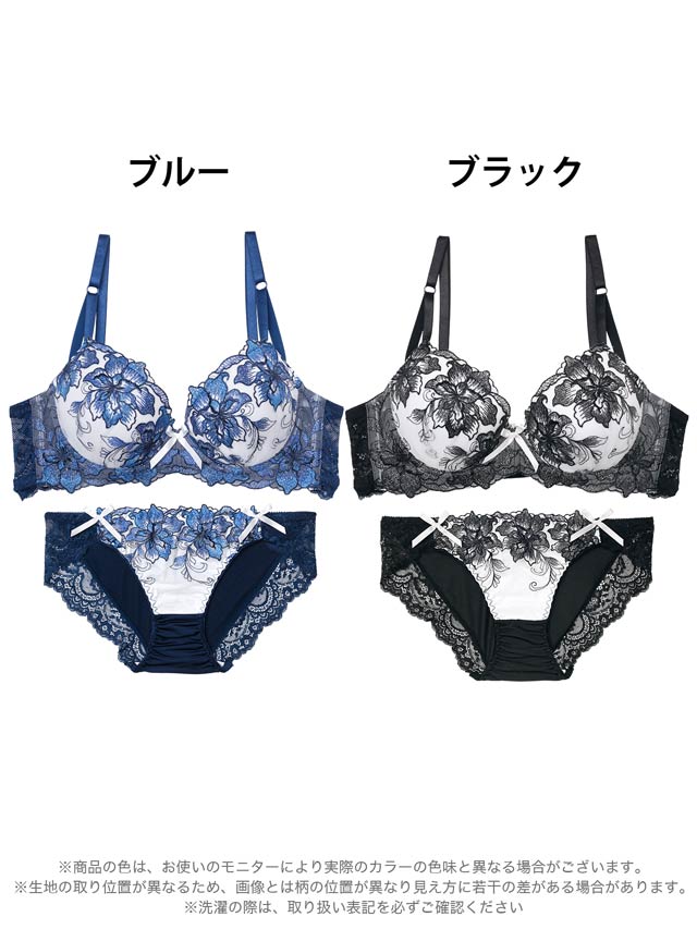 12/2再販!【三上悠亜着用】エレガンスフラワー刺繍ブラジャー&フルバックショーツ[激売れ]