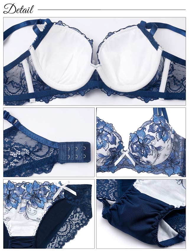 ダスティブルームエンブロイダリー育乳脇高ブラジャー&バック透けフルバックショーツ
