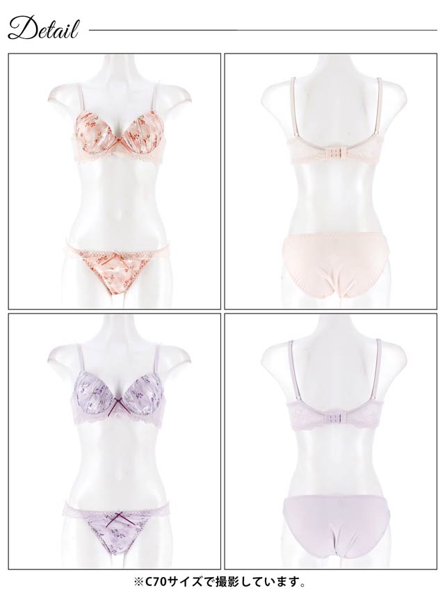 ダスティブルームエンブロイダリー育乳脇高ブラジャー&バック透けフルバックショーツ