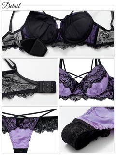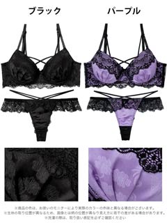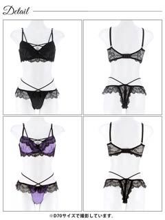 オールレースカットストリング育乳脇高ブラジャー&バック透けフルバックショーツ