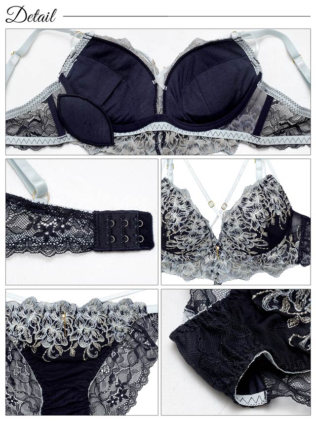 ダスティブルームエンブロイダリー育乳脇高ブラジャー&バック透けフルバックショーツ