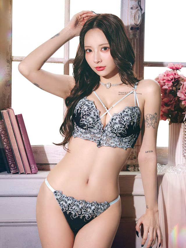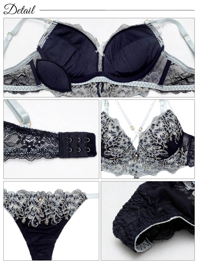 ダスティブルームエンブロイダリー育乳脇高ブラジャー&バック透けフルバックショーツ