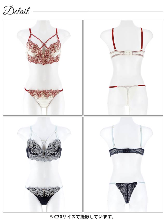 オールレースカットストリング育乳脇高ブラジャー&バック透けフルバックショーツ
