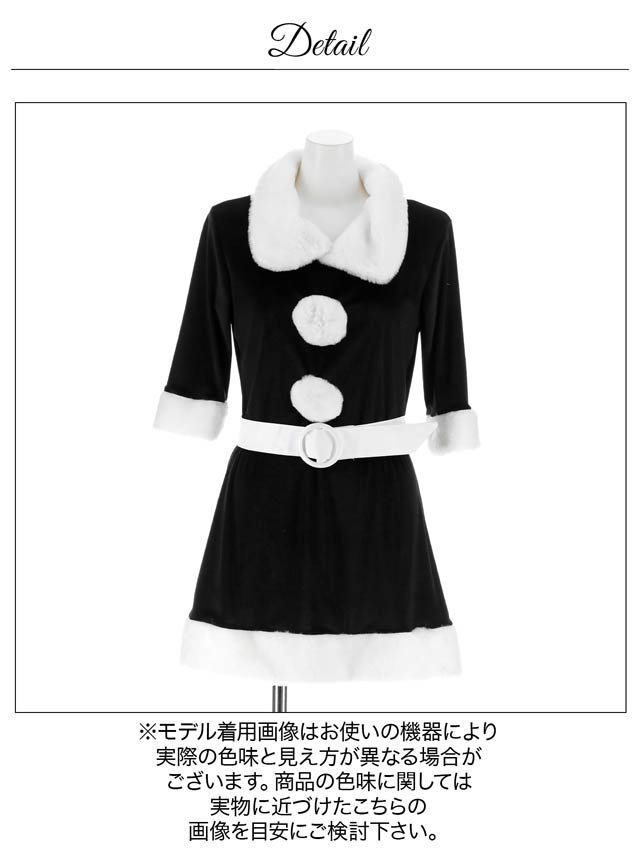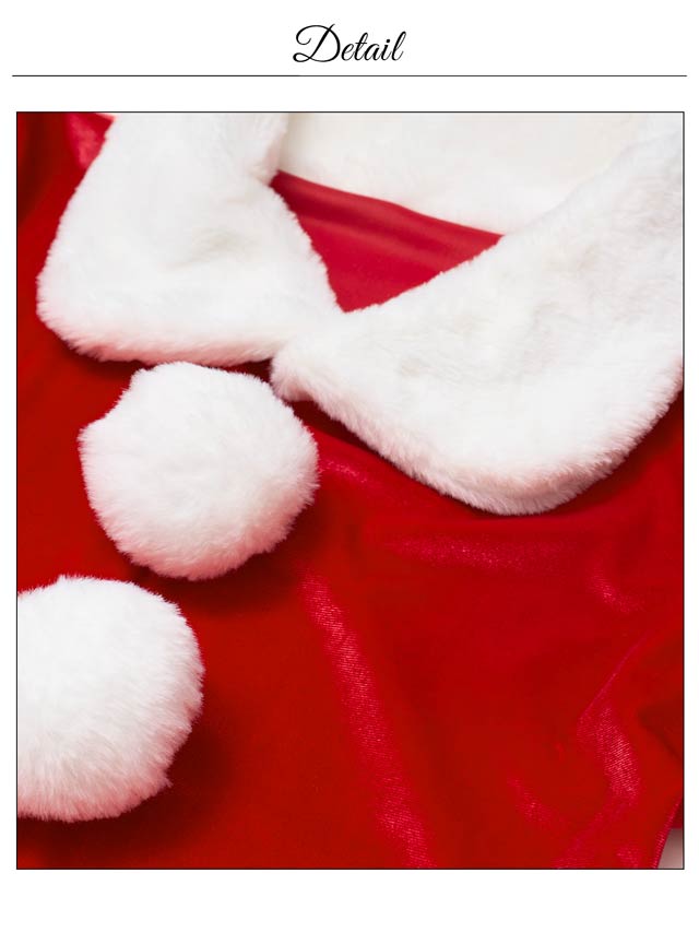 首元の大きなボアの丸襟がキュートなシンプルフレアワンピースサンタコス。定番タイプだから露出が苦手な方にもおすすめ!誰でも着こなせるのでイベント初めての初心者さんも着やすい♪