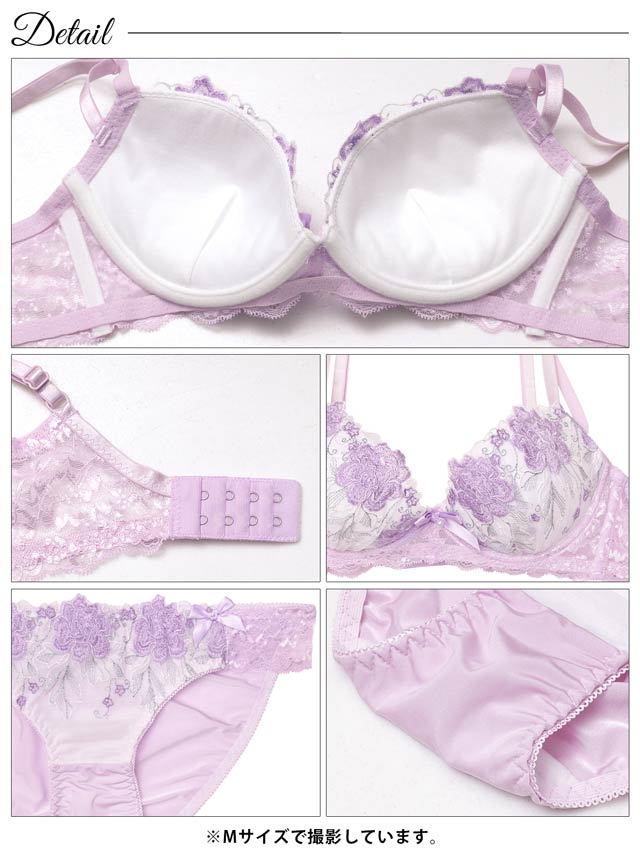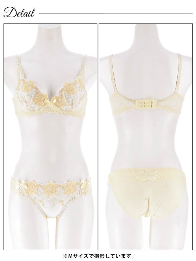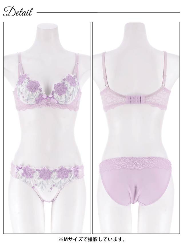 ダスティブルームエンブロイダリー育乳脇高ブラジャー&バック透けフルバックショーツ