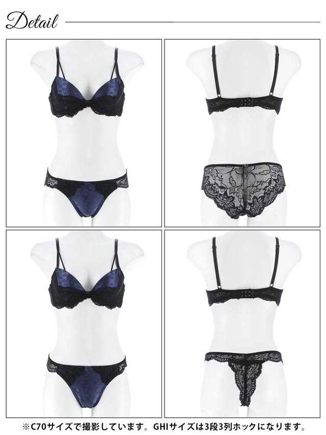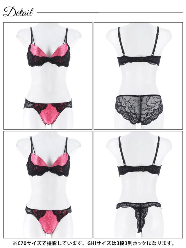 11/19新作!【3点セット】【GHIサイズ】グロスサテンリボンレースブラジャー&バック透けフルバック&Tバックショーツ[大人気]