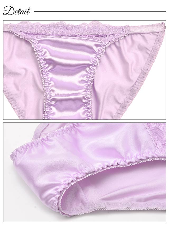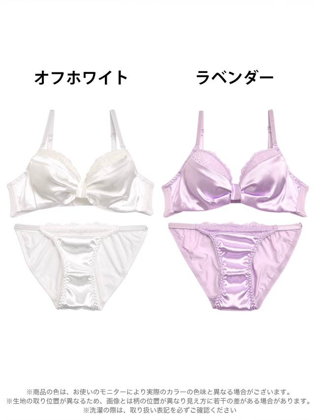 スイートサテンリボンレースブラジャー&フルバックショーツ