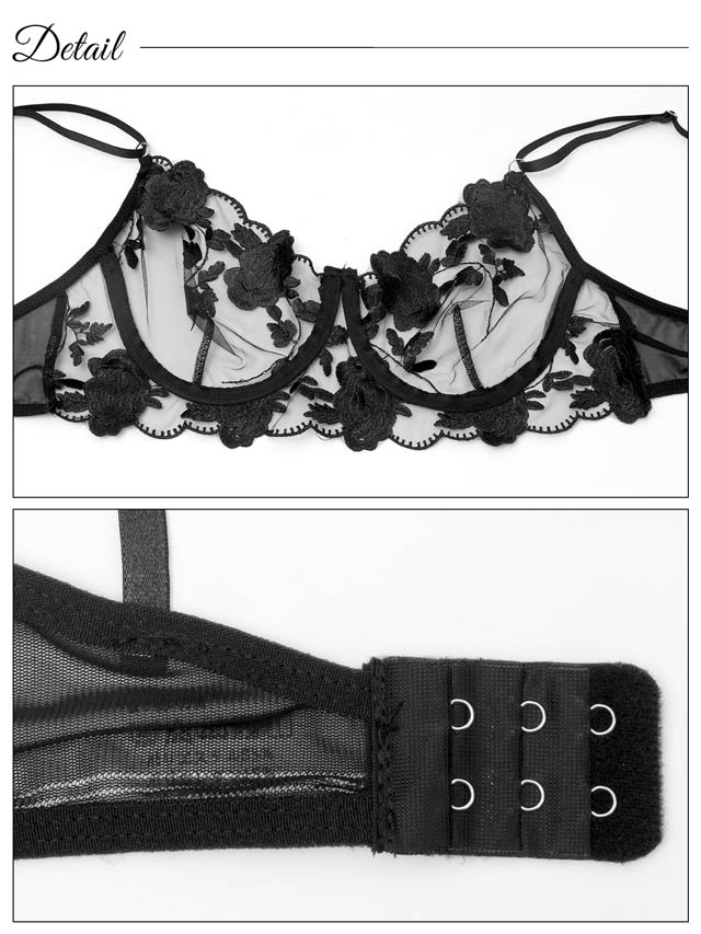 ダスティブルームエンブロイダリー育乳脇高ブラジャー&バック透けフルバックショーツ