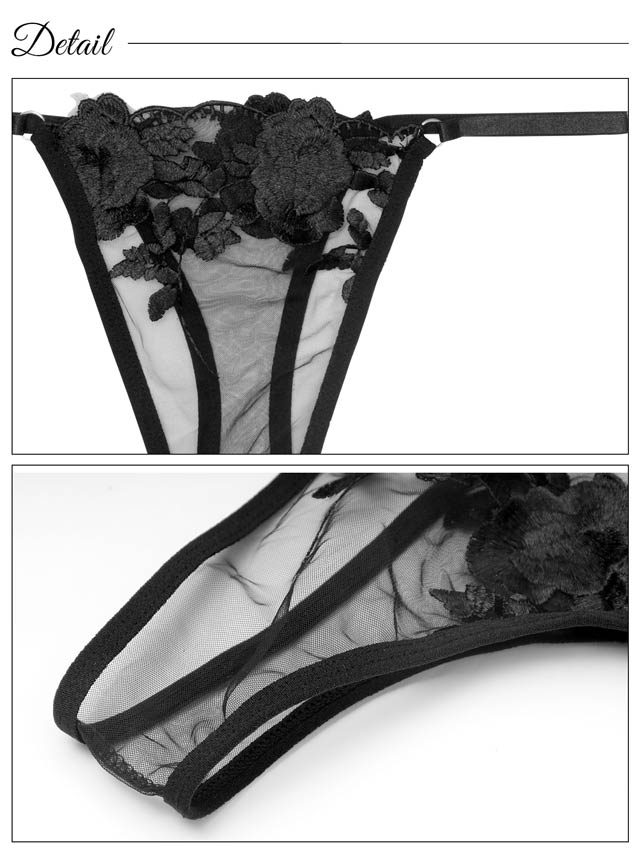 オールレースカットストリング育乳脇高ブラジャー&バック透けフルバックショーツ