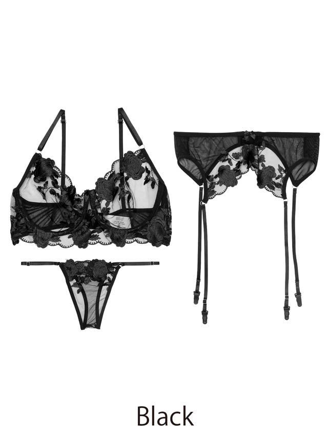 11/20再販![CARRIEFRANCA]スカラップシアーローズガーターブラセット[大人気]