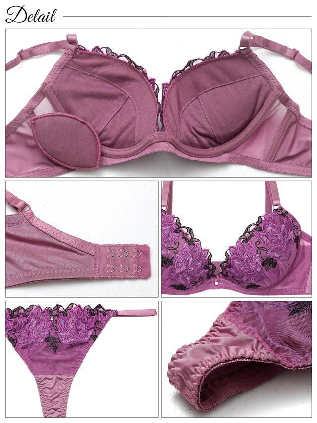 ダスティブルームエンブロイダリー育乳脇高ブラジャー&バック透けフルバックショーツ