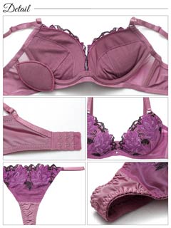 12/2再販!ダスティブルームエンブロイダリー育乳脇高ブラジャー&バック透けフルバックショーツ[激売れ]