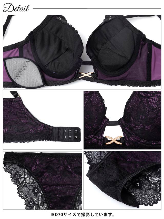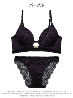 【三上悠亜着用】シャドウレースビジューホール育乳脇高ブラジャー&バック透けフルバックショーツ[激売れ]