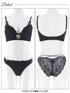 フロレゾンローズレース育乳脇高ブラジャー&サイド紐バック透けフルバックショーツ