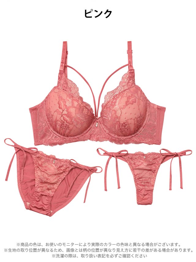 11/17新作!ディープリボンレースアップ育乳脇高ブラジャー&バック透けフルバックショーツ[激売れ]