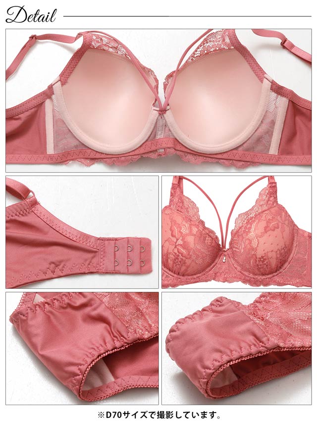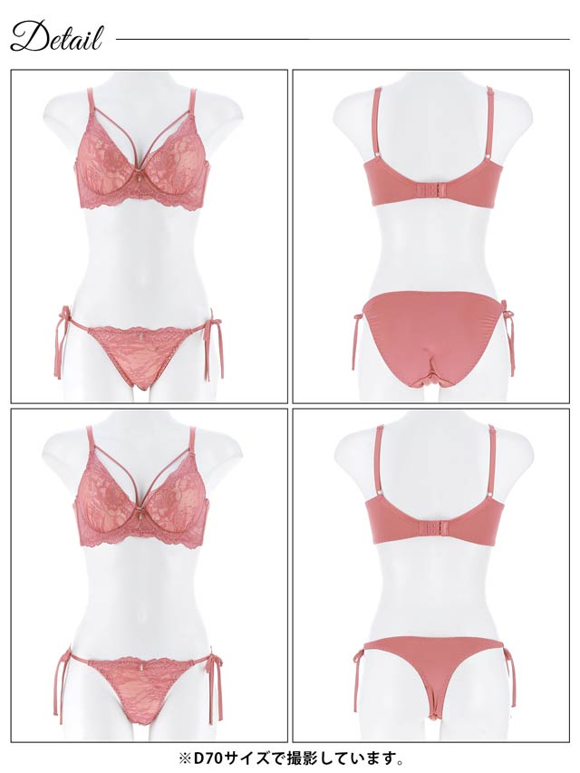 オールレースカットストリング育乳脇高ブラジャー&バック透けフルバックショーツ