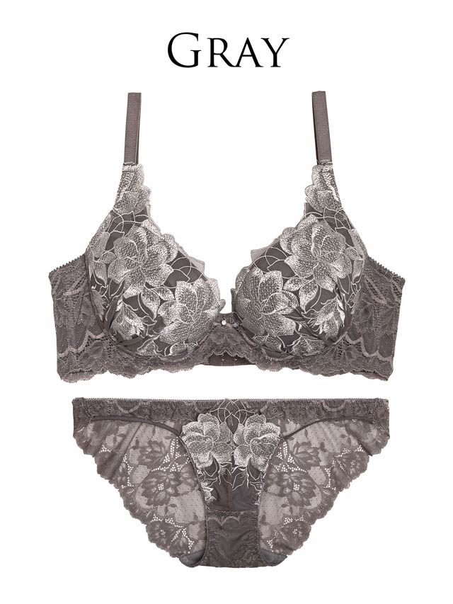 ダスティブルームエンブロイダリー育乳脇高ブラジャー&バック透けフルバックショーツ