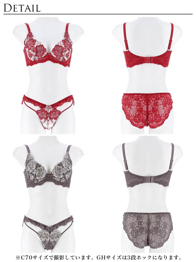 ロマンティックベルローズ育乳脇高ブラジャー&バック透けフルバックショーツ