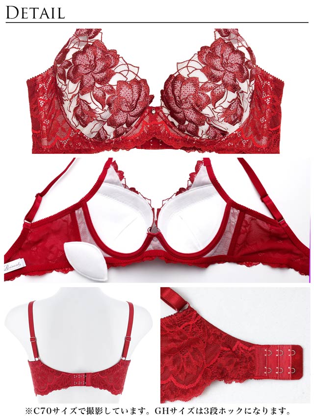 【Reinest】エターナルディープフラワー育乳脇高★魔法のブラジャー&バック透けフルバックショーツ[大人気]