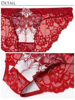 オールレースカットストリング育乳脇高ブラジャー&バック透けフルバックショーツ