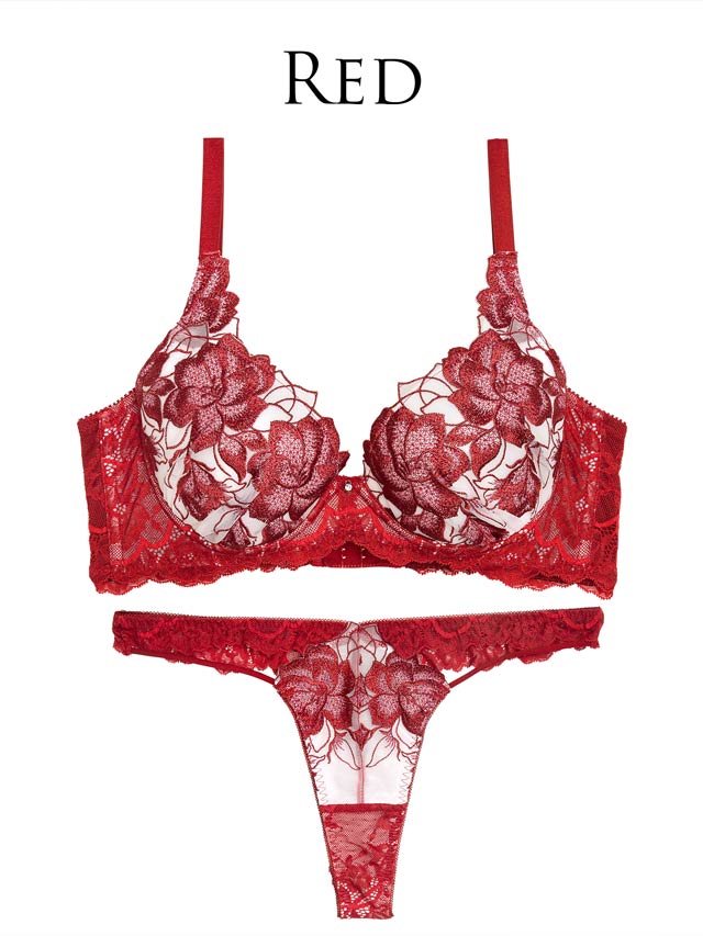【Reinest】エターナルディープフラワー育乳脇高★魔法のブラジャー&バック透けフルバックショーツ[大人気]