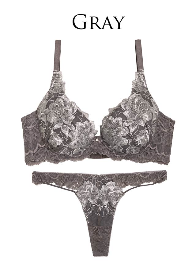 12/2再販!ダスティブルームエンブロイダリー育乳脇高ブラジャー&バック透けフルバックショーツ[激売れ]