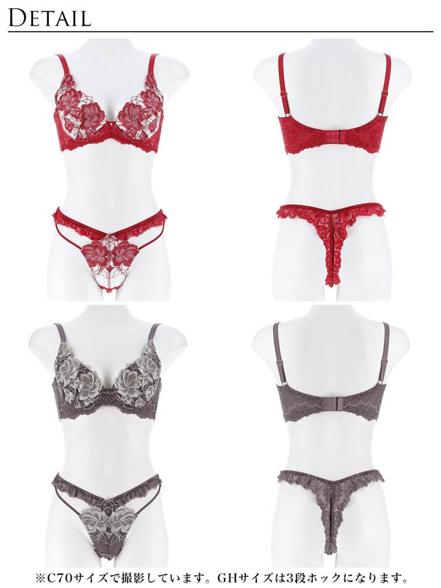 ロマンティックベルローズ育乳脇高ブラジャー&バック透けフルバックショーツ