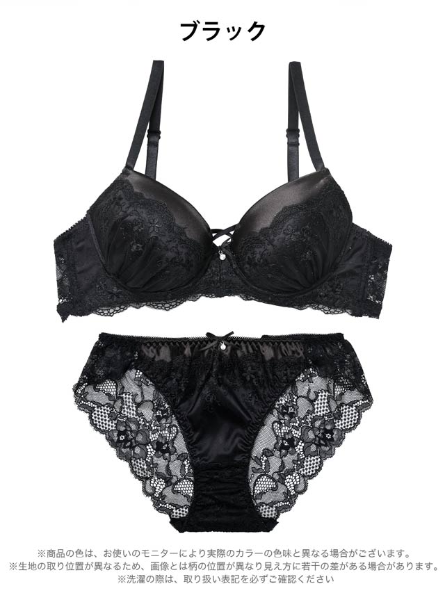 ダスティブルームエンブロイダリー育乳脇高ブラジャー&バック透けフルバックショーツ