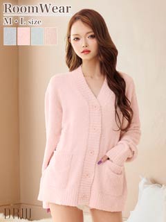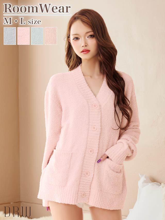 11/21新作!ワンカラーふわふわVネック長袖カーディガンルームウェア