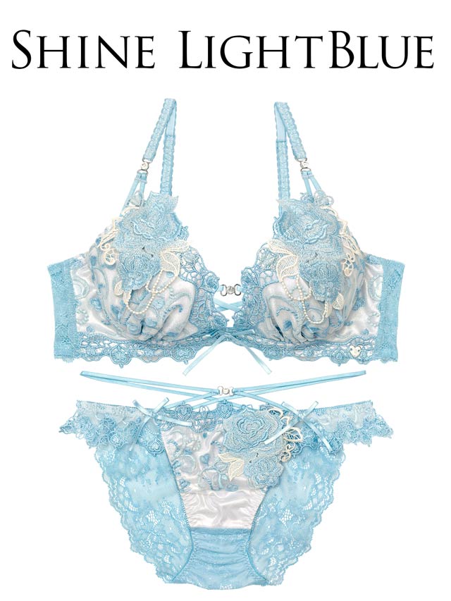 ゴージャスシャインローズチョーカーブラ&Tバック / ブルー