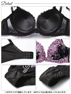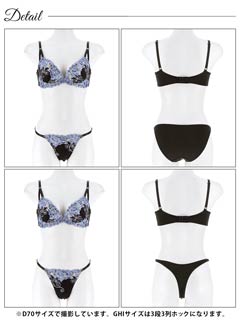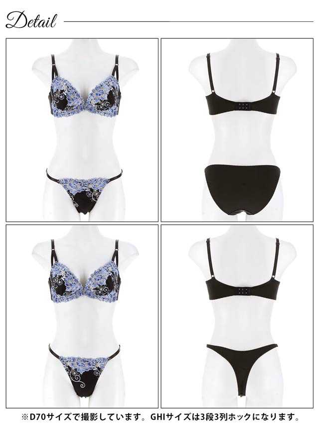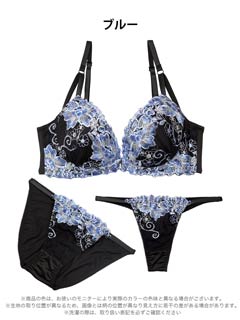 ダスティブルームエンブロイダリー育乳脇高ブラジャー&バック透けフルバックショーツ