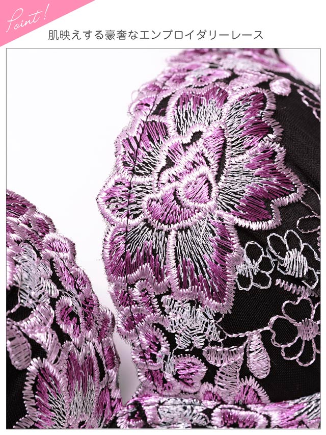 12/2再販!ダスティブルームエンブロイダリー育乳脇高ブラジャー&バック透けフルバックショーツ[激売れ]
