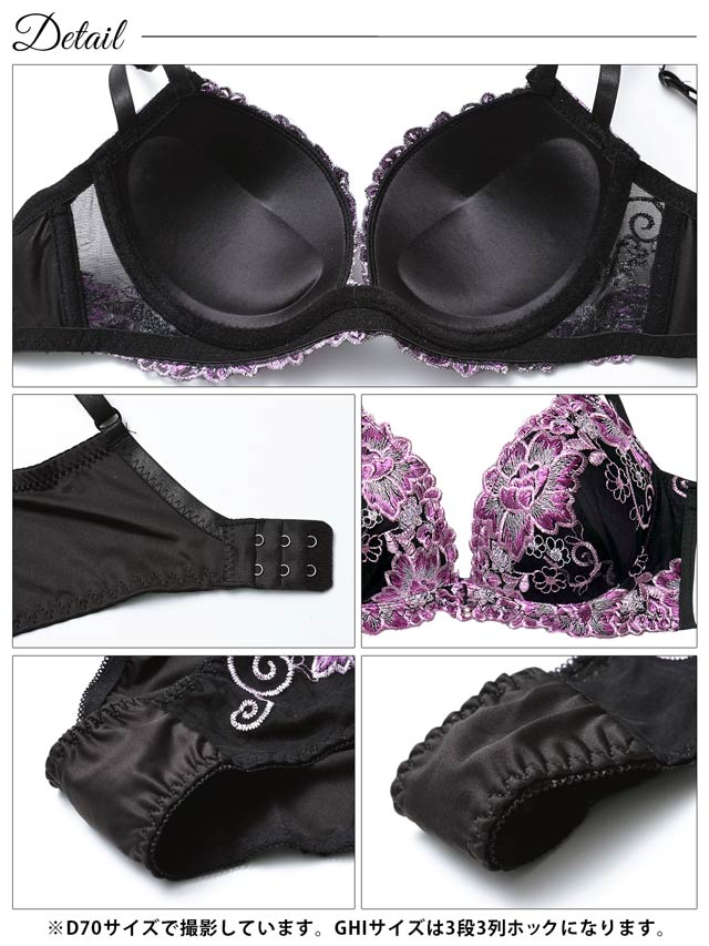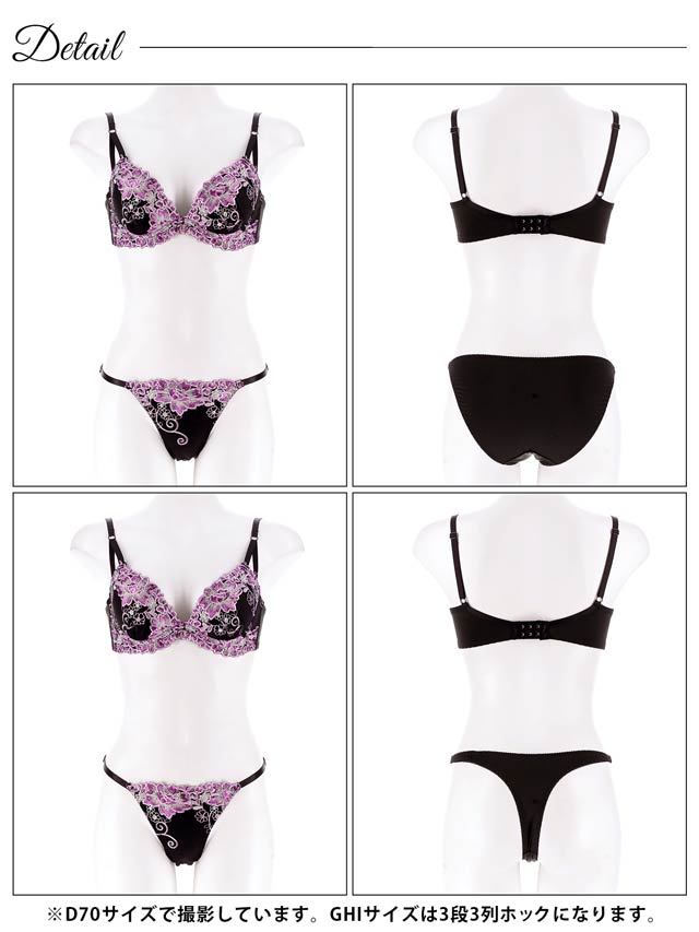 【3点セット】【GHIサイズ】ディープクイーンローズ育乳脇高ブラジャー&バック透けフルバック&Tバックショーツ