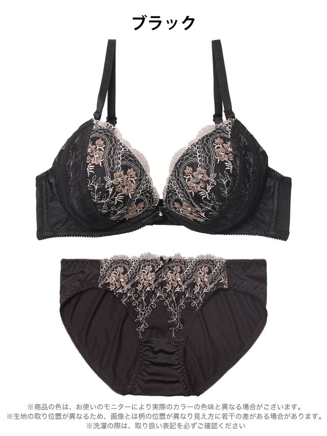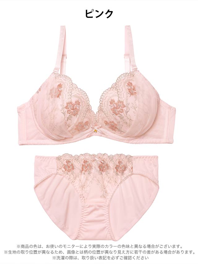 ダスティブルームエンブロイダリー育乳脇高ブラジャー&バック透けフルバックショーツ