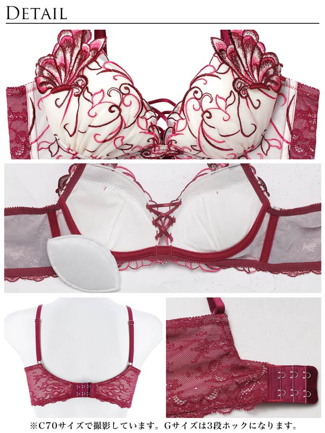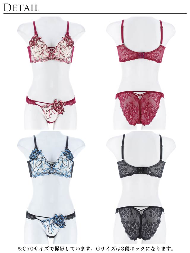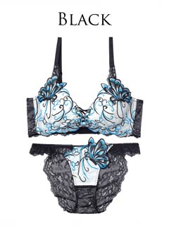 ダスティブルームエンブロイダリー育乳脇高ブラジャー&バック透けフルバックショーツ